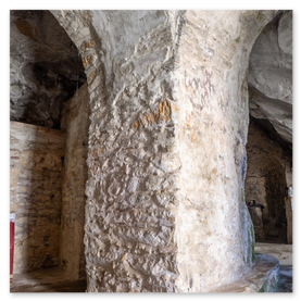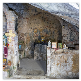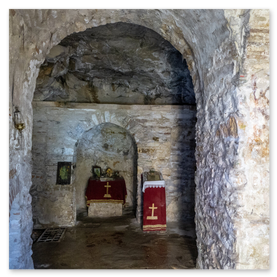 νότιο εκκλησάκι, αφιερωμένο στον Άγιο Σπυρίδωνα, είναι λαξευμένο κυριολεκτικά