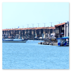 Τοποθετημένα στη σειρά, δημιουργούν ένα μικρό χωριό που «επιπλέει» στον Θερμαϊκό, με τις δεμένες βάρκες, τα δίχτυα, ακόμη και τις αυτοσχέδιες… ψησταριές που κάποιοι μερακλήδες διαθέτουν για τους ψαρομεζέδες τους.